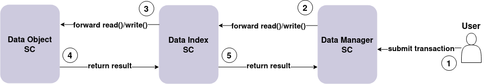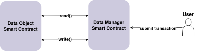 - Data Manager – A smart contract that modifies/reads the data stored in the Data Object contract. This contract is responsible for storing the business logic.