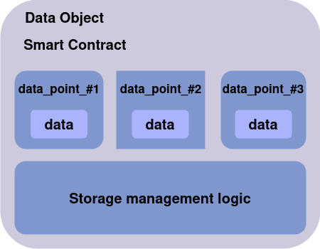 The diagram below illustrates the structure of the Data Object smart contract containing Data Points. As you can see, for each piece of data stored in the smart contract, the corresponding reference in the form of a Data Point is attached.